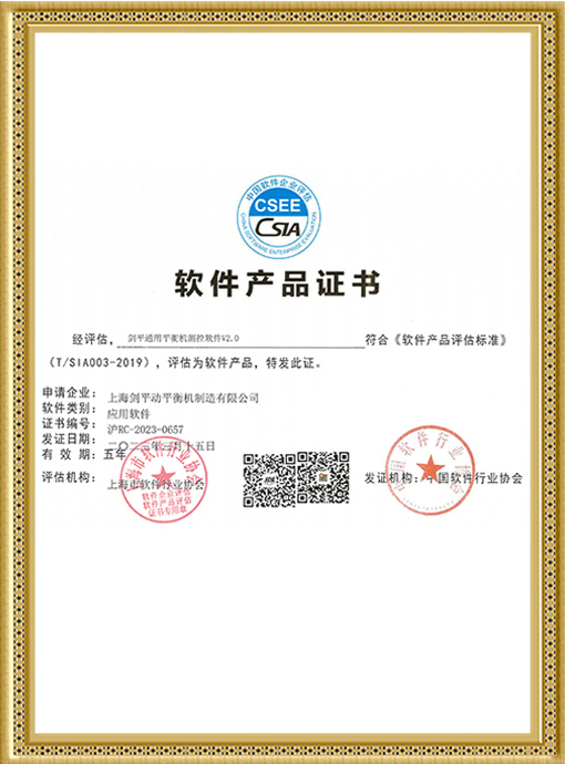 軟件產品證書 劍平全自動平衡機系統控制軟件